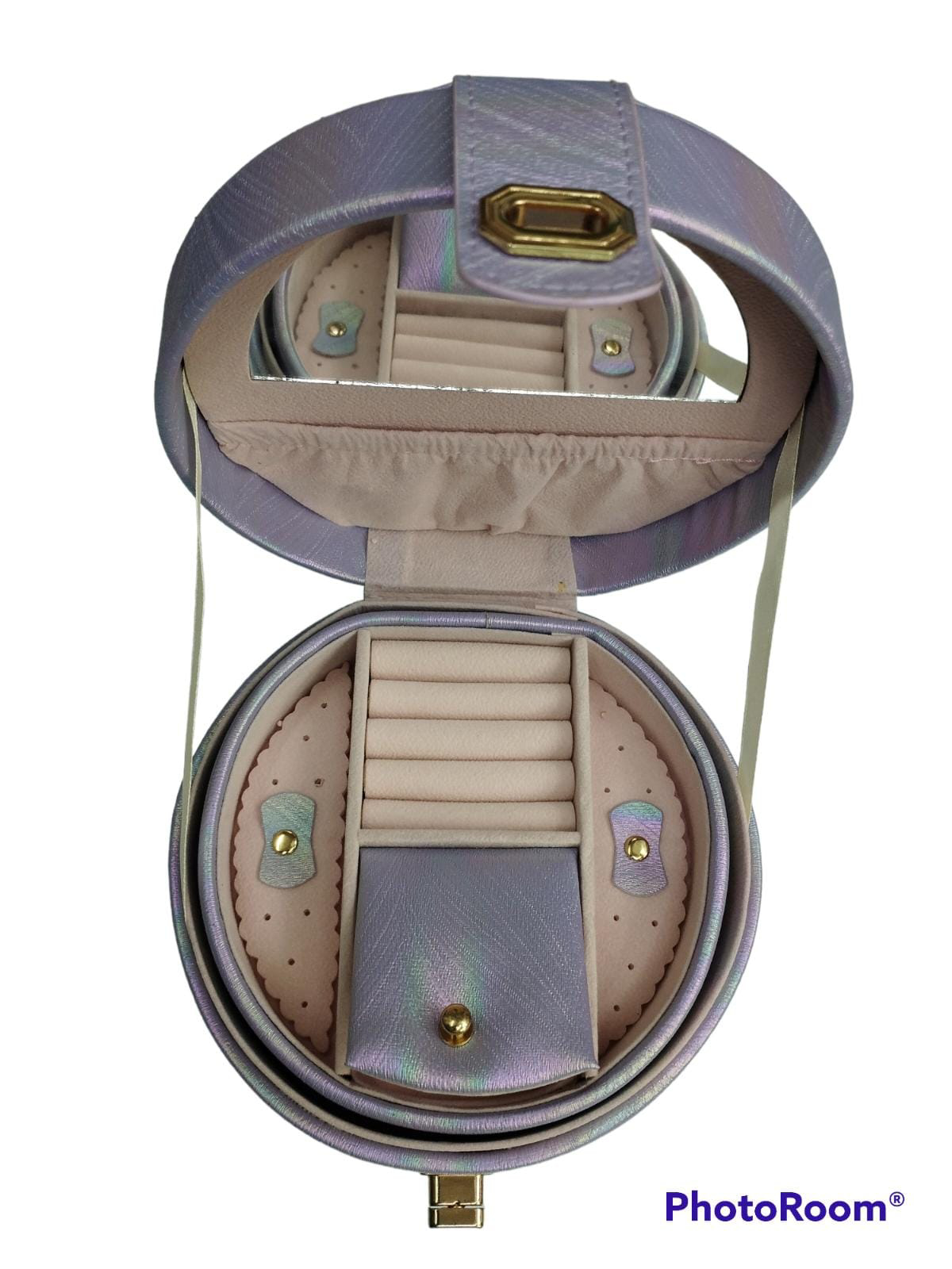 يمكن استخدام صندوق المجوهرات مع مرآة هذا للسفر مع المقتنايات الثمينة حيث إنه محمول وخفيف للحمل مما يجعله مثالي للرحلات الطويلة.