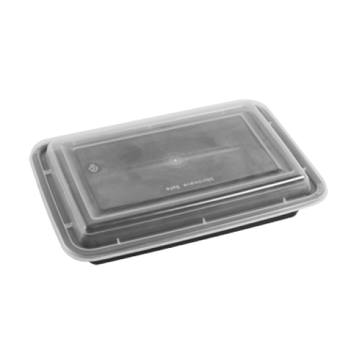 علبة مستطيل مايكروويف أسود بغطاء شفاف 28 اونص