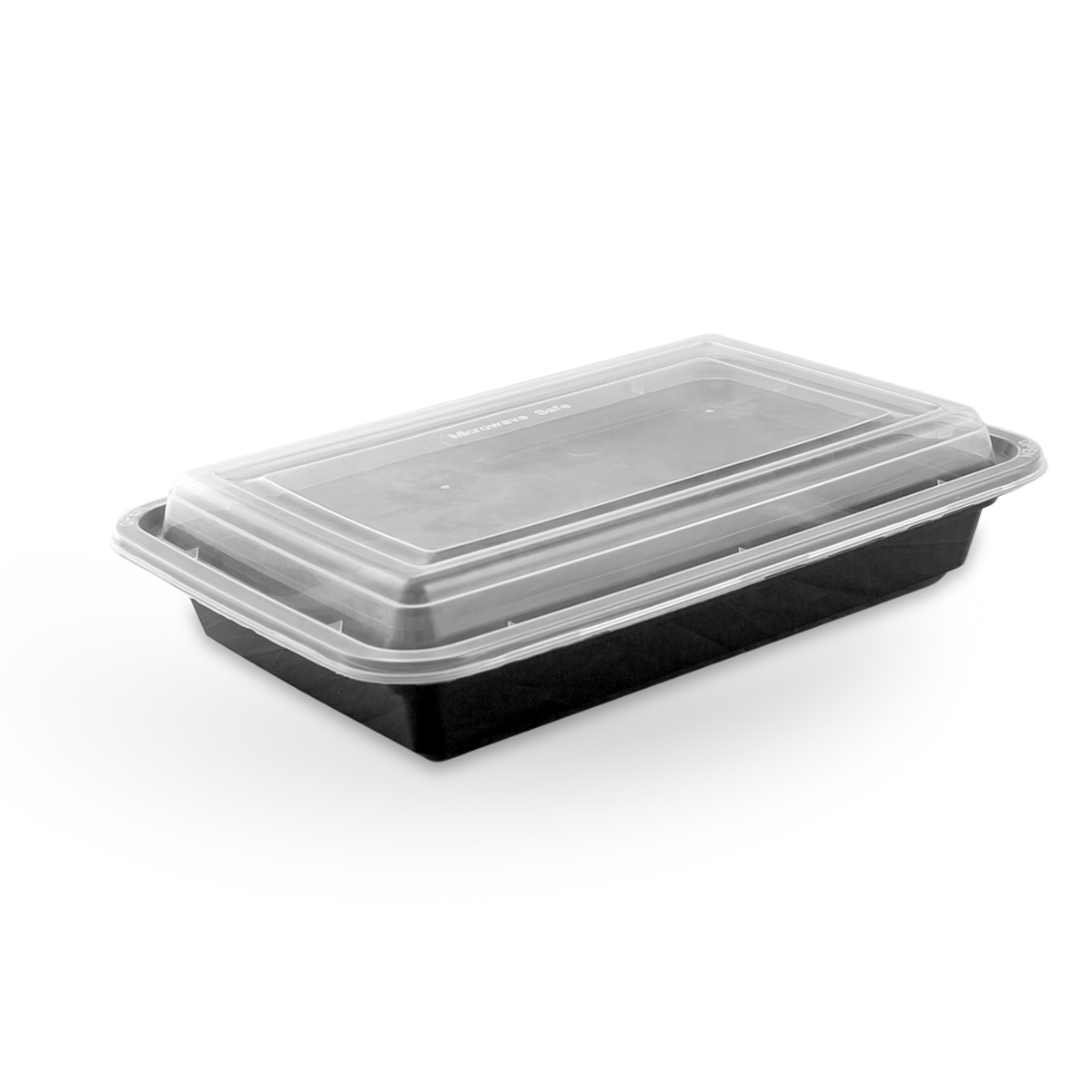 علبة مستطيل مايكروويف أسود بغطاء شفاف 32 اونص