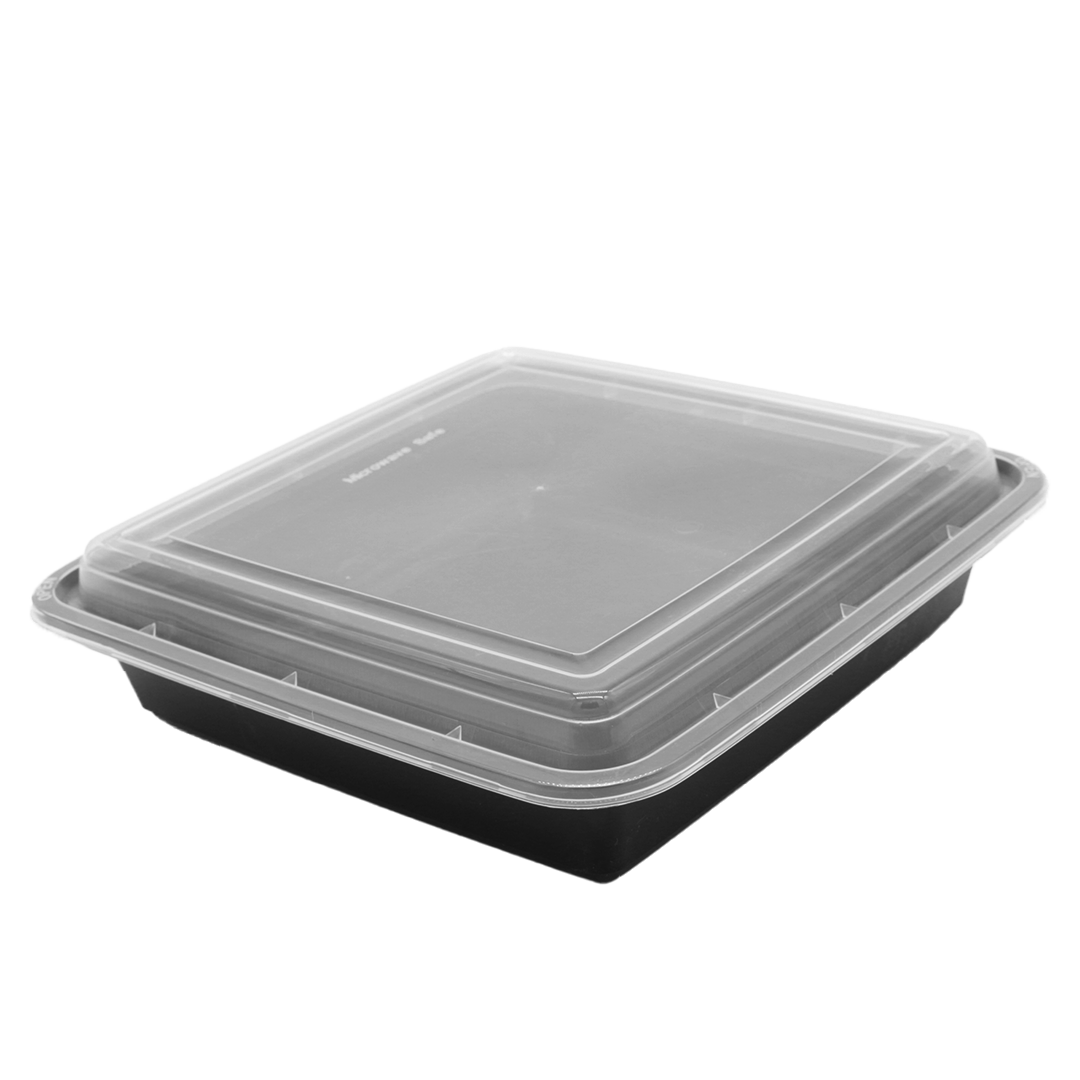 علبة مستطيل مايكروويف أسود بغطاء شفاف 58 اونص