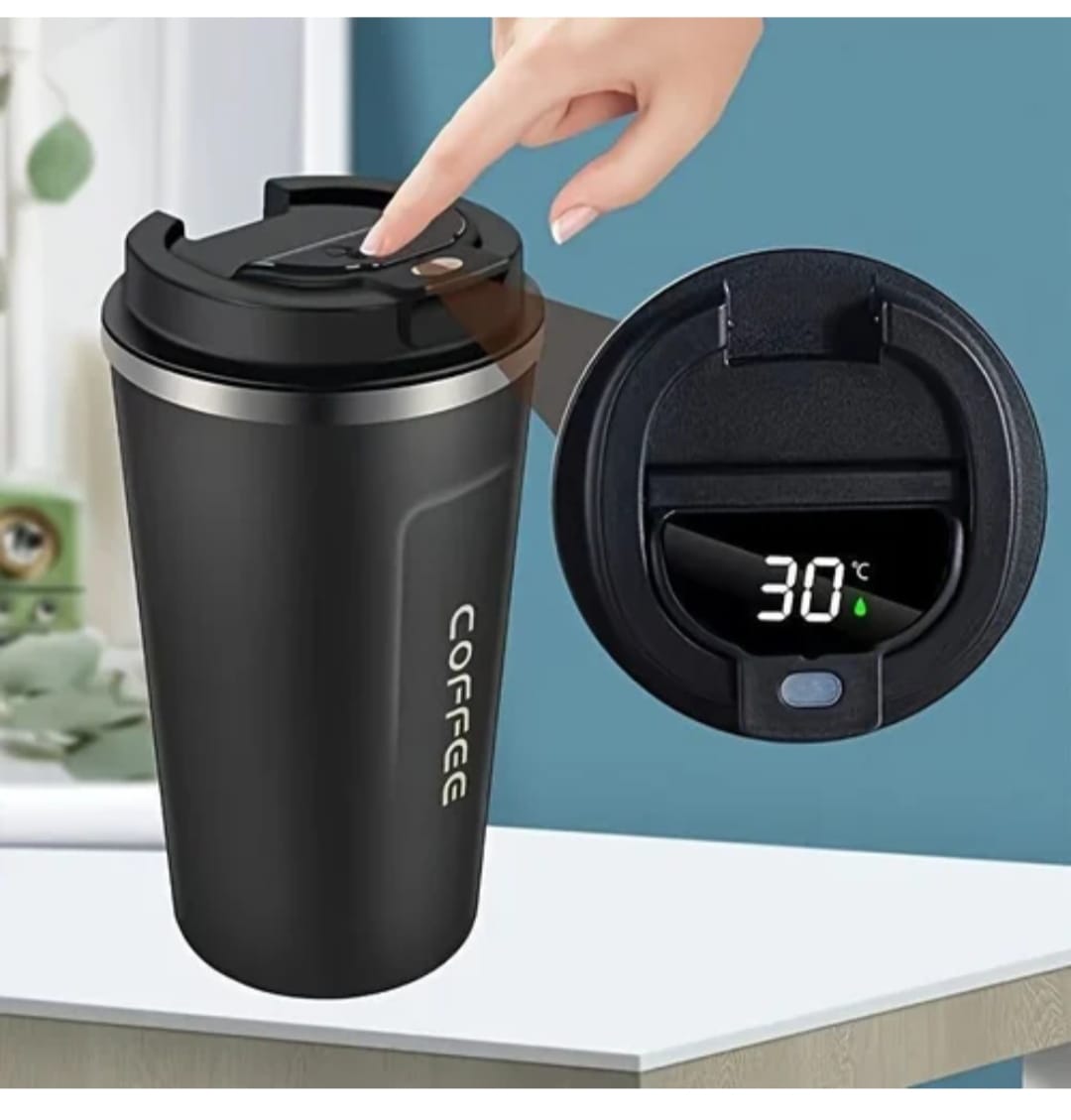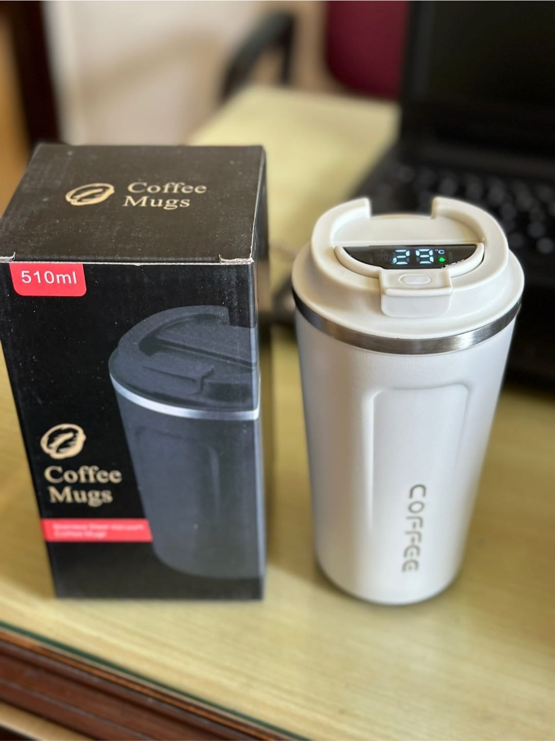 كوب قهوة حراري مع شاشة عرض درجة الحرارة. الميزات: يتميز بشاشة رقمية تعرض درجة حرارة السائل بالداخل، مما يتيح لك معرفة ما إذا كانت قهوتك أو مشروبك الساخن لا يزال دافئًا بدرجة كافية.