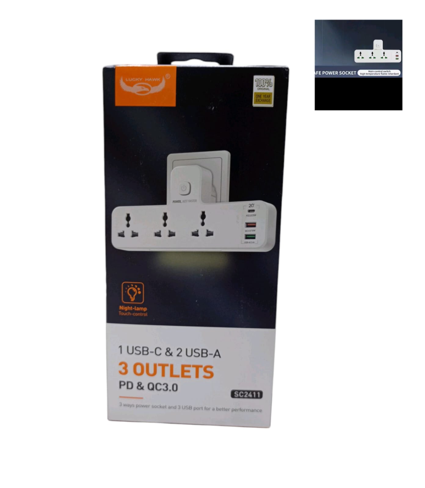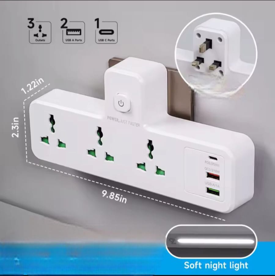 مقبس طاقه بثلاث منافذ و3منافذ USB لاداء افضل