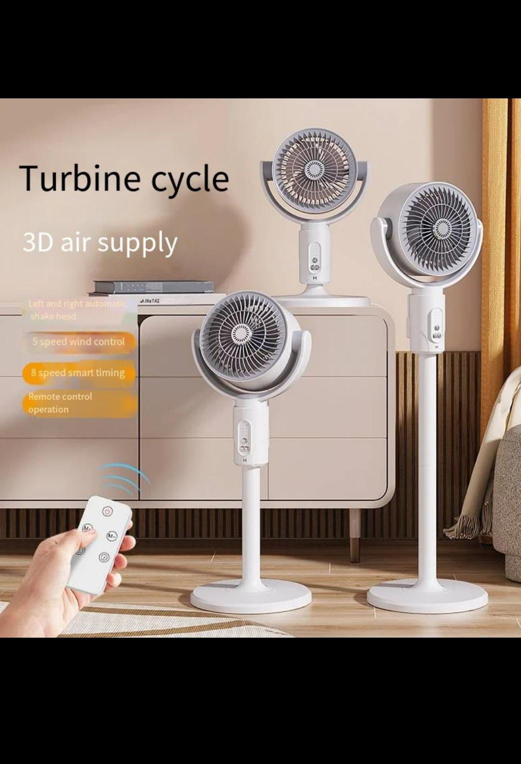 المروحة التوربينية متعددة الاستخدامات! دوران 3D لتوزيع الهواء في جميع الاتجاهات. رأس متحرك أوتوماتيكياً يمين ويسار لتغطية أوسع.