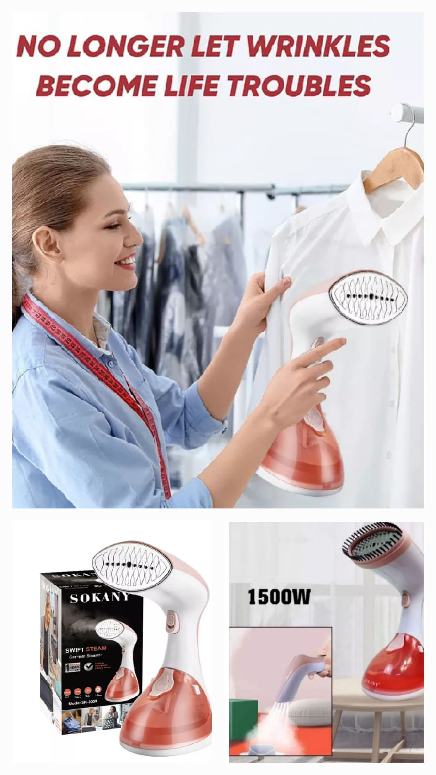 تخلص من تجاعيد الملابس باستخدام مكواة بخار بقوة 1500 واط مع خزان مياه سعة 270 مل